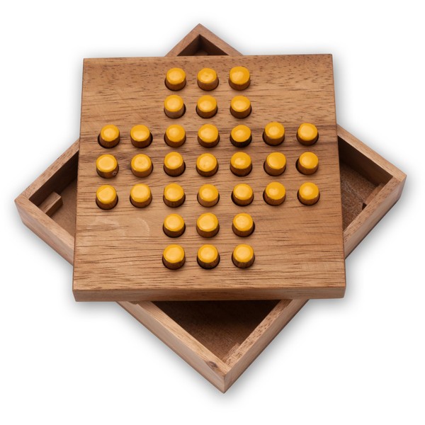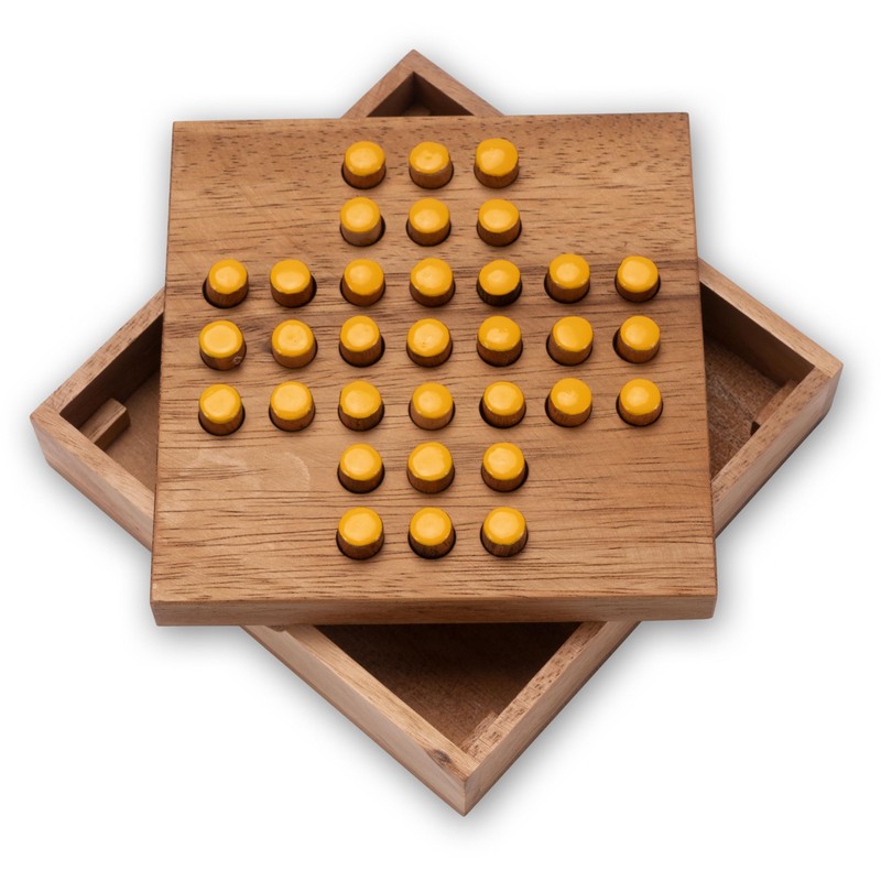 Solitaire Large Wooden Solitaire Game – Thinking Game – Puzzle Game – Puzzle – Yellow Jack