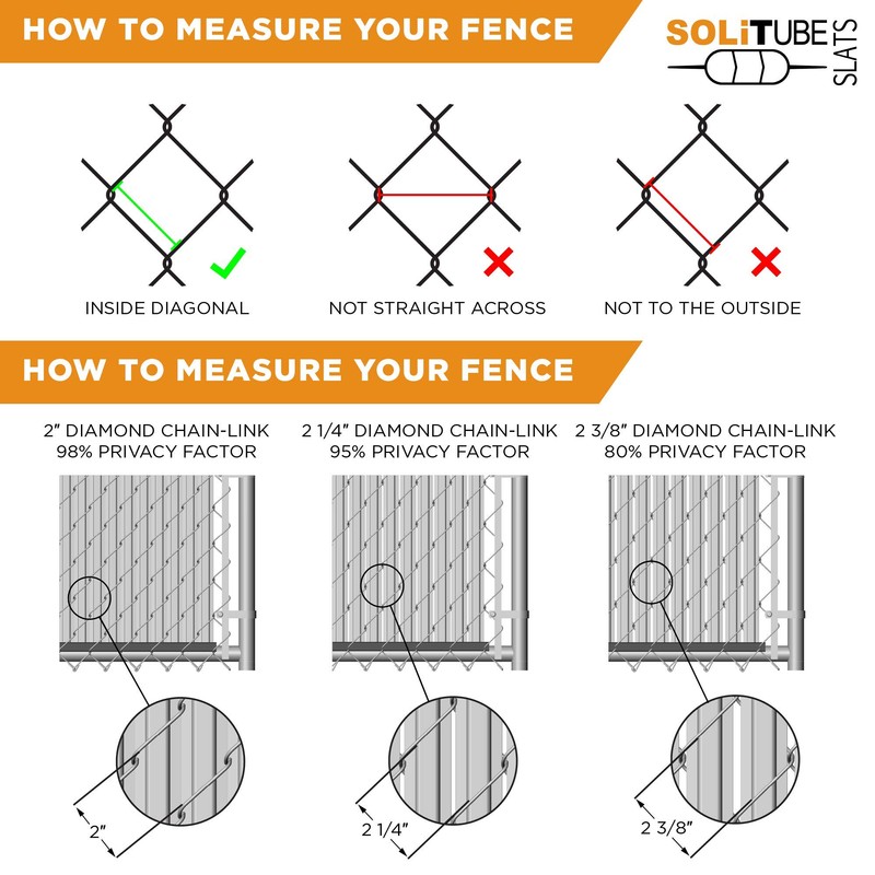 - FENCE PRIVACY: Unlike fence tape, these slats are designed to easily slide vertically through your chain-link fence for optimal outdoor privacy. Determine the diamond size of your fence by measuring diagonally between the parallel wires, not corner to corner. The added privacy of the wings leaves no unsightly perforations or wave pattern. Compatible with 4', 6', and 8' height fences.