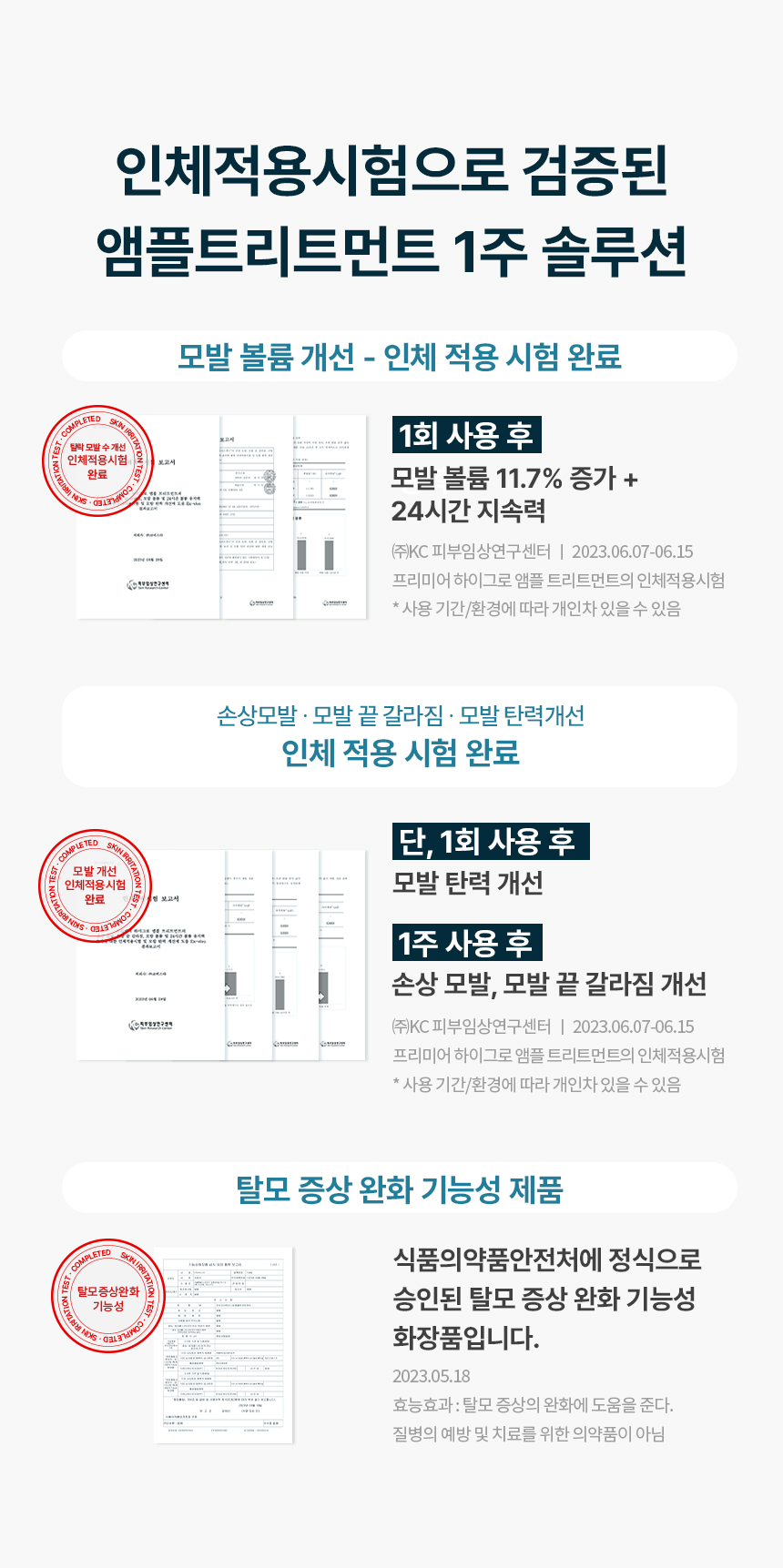| 화장품법에 따른 기능성 화장품 (미백/ 주름개선/ 자외선 차단제품 등)의 경우 "화장품법에 따른 기능성 화장품 심사(또는 보고)를 필함"의 문구 | 탈모완화 기능성화장품 인증필 / 질병의 예방 및 치료를 위한 의약품이 아님 |