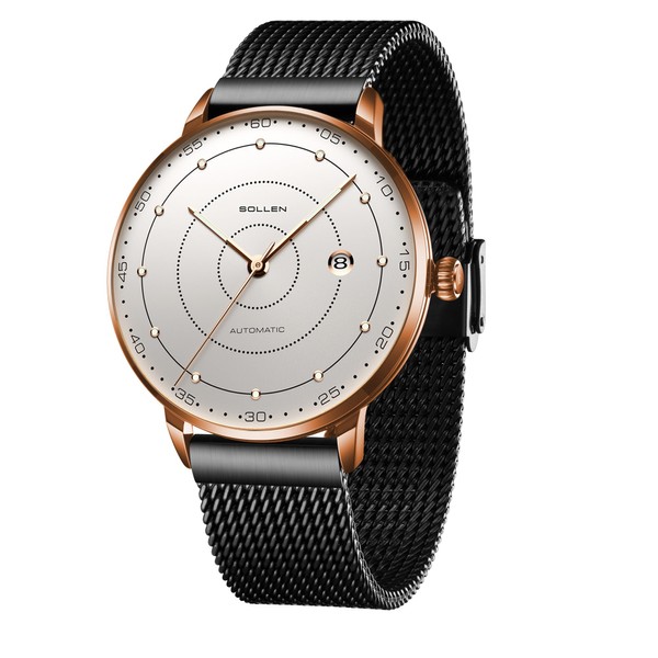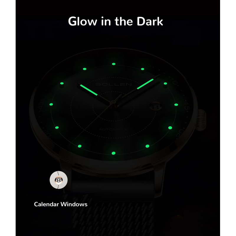 SOLLEN Automatic Self Winding Watches for Men, Mens Automatic Watch, Mechanical Stainless Steel 3 ATM Waterproof Luminous Luxury Dress Men's Wrist Watches with Calendar, Minimalist Watch Gifts for Men