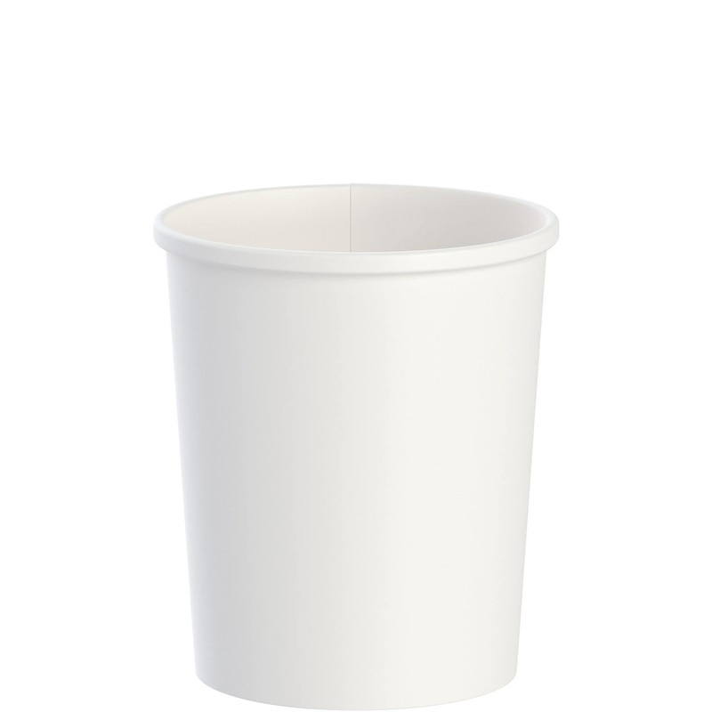 - Disposable 32 oz. white paper container for transporting and serving hot and cold food items