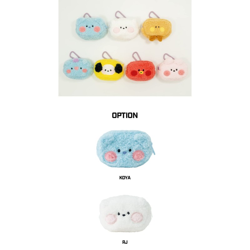 Solomon Shoji BT21 Minini Coin Case with Carabiner, Plush Coin Case, Stuffed Toy, Pouch, Coin Purse, Small Compartment, Fluffy, Fluffy