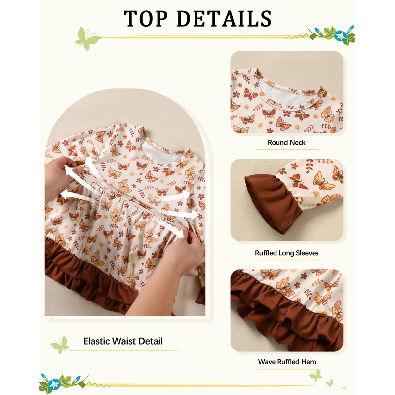 - Packaging: Each purchase girls fall clothes includes 1x ruffled long-sleeve shirt and 1x bell-bottom pants. Machine washable and hand washable for easy care