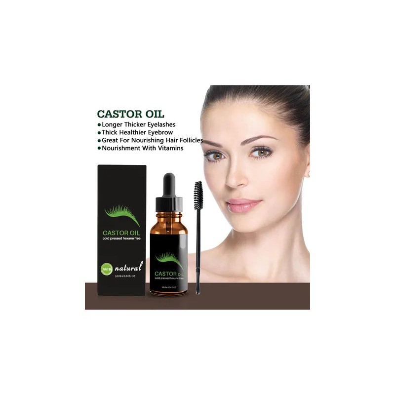Ingredientes naturales - Este sérum extraído de ricino con los más altos estándares de calidad, en frío y de forma natural sin hexano, conservantes ni productos químicos. El cepillo de aceite de ricino para fijar se puede aplicar fácilmente en las pestañas, las cejas y el cabello.