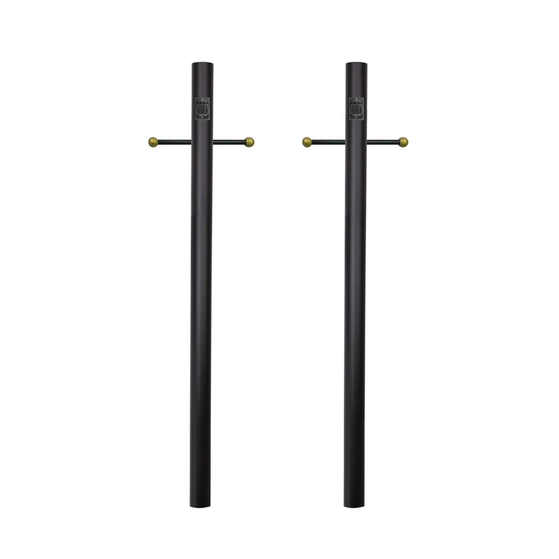 Solus SP7-C-BK-2PK 7' Outdoor Direct Burial Lamp Post with Cross Arm & Grounded Convenience Outlet, Fits 3" Post Top Fixtures, Includes Inlet Hole, Corrosion & Weather Resistant, Black, Pack of 2