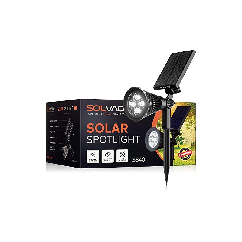 SOLVAO Solar Spotlight (Upgraded) - Ultra Bright, Waterproof, Outdoor LED Spot Light with Auto On/Off Function - Best Sun Powered, Rechargeable Uplight for Lighting Flag Pole, Landscape, Yard & Garden