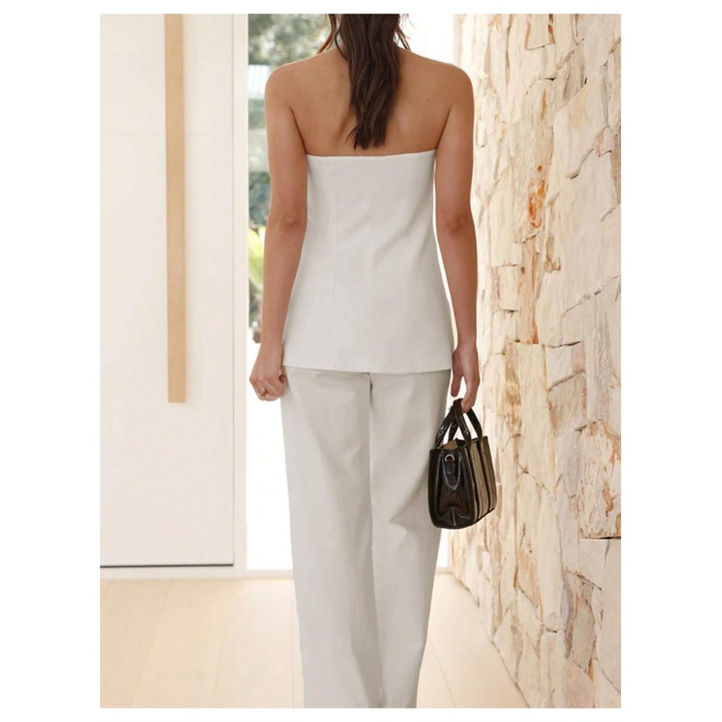 - Features: Sleeveless, low cut, strapless bandeau top, high waisted straight leg palazzo pants, solid color, 2 piece sets for women