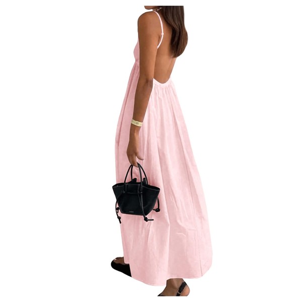 SOLY HUX Women's Summer Dress Backless V Neck Spaghetti Strap Loose Flowy Midi Cami Dresses Solid Light Pink Medium
