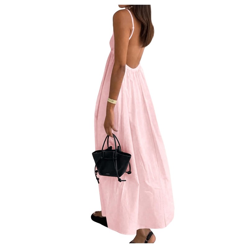 - Feature: Spaghetti strap, v neck, sleeveless, backless, midi length, loose fit, fashionable