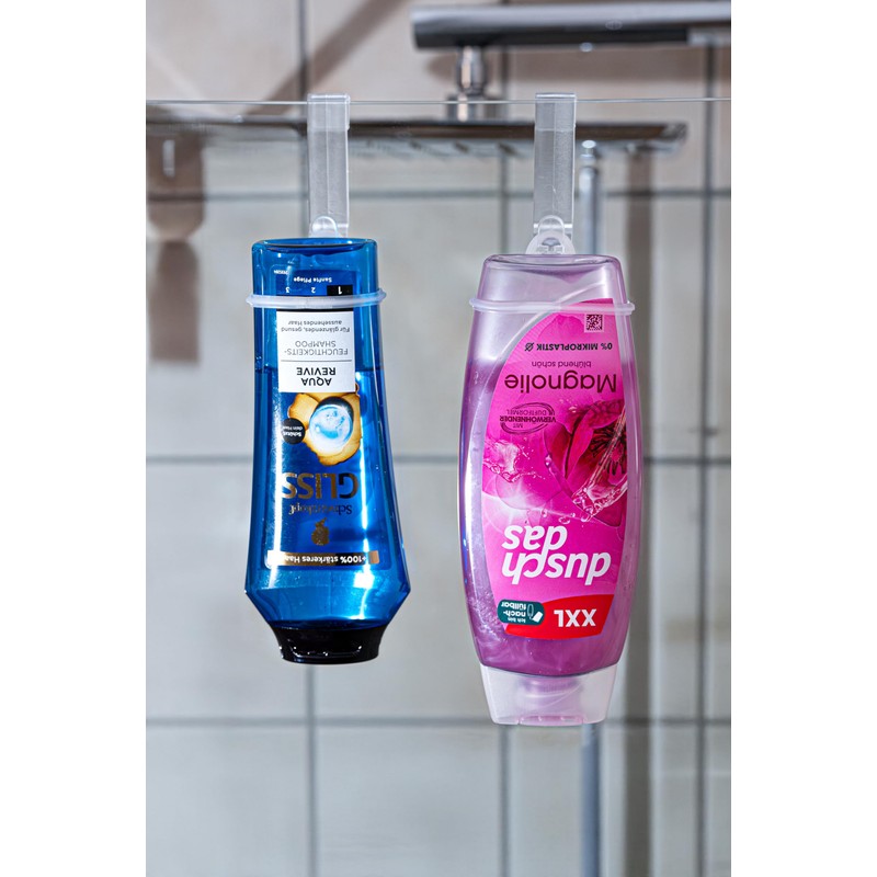 SOMA Flexible Rubber Bands for Bathroom Hooks - Universal Holder for Shampoo, Shower Gel & Co. - Smooth, Limescale Resistant Surface - Transparent