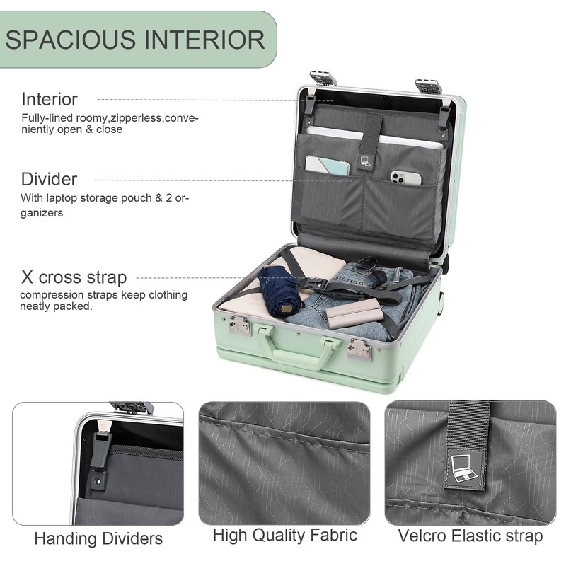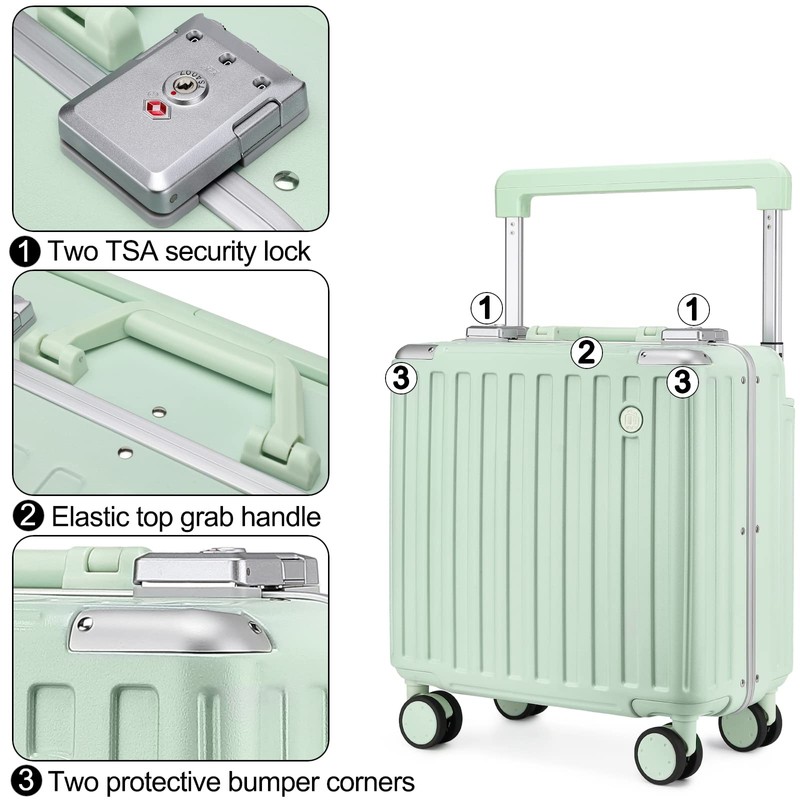 Somago Aluminum Frame 18" Carry On Luggage Wide Handle Suitcase Built-In Double TSA Lock Hardside Lightweight PC Travel Suitcase with Spinner Wheels, Lime