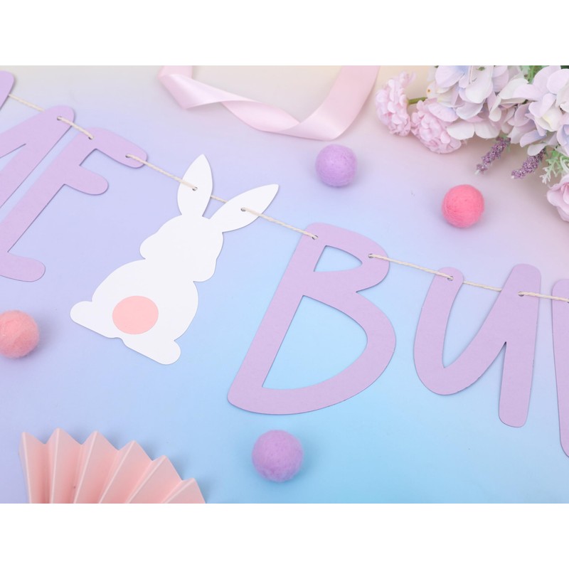 - Adorable Bunny-Themed Design: Great for your little girl's first birthday, this banner features a charming "Some Bunny Is One" phrase with soft lavender letters and cute bunny ears, adding a festive, springtime touch to your party décor.