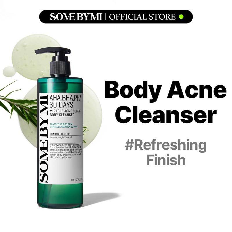 Achieve clearer, smoother skin with the SOME BY MI AHA BHA PHA 30 Days Miracle Acne Clear Body Cleanser (13.5oz / 400ml). This gentle yet powerful body wash is specially formulated for back acne and body blemishes, combining Korean skincare expertise with exfoliating AHA, BHA, and PHA acids.