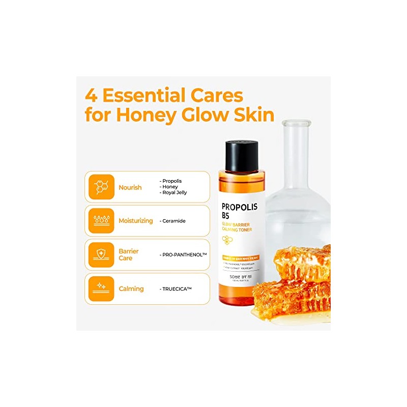 SOME BY MI Propolis B5 Glow Barrier Calming Toner / 5.07Oz, 150ml / Strengthen Skin Barrier with Honey Extracts / Brightening and Skin Calming Effect, Sebum and Pimple Care / Facial Skin Care