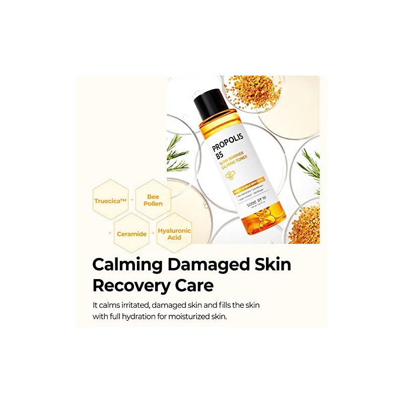- A skin-nourishing toner contains 65% of Propolis that boosts skin's moisture level while improve skin texture .