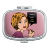This terrific case can hold anything from medications to coins to your miscellaneous trinkets. The rounded rectangular shape is the perfect frame for the resin-topped printed graphic that adorns the hinged lid. The interior features a plastic insert, which gives you two compartments with which to organize your pill box's contents. The exterior of the case is made of chrome-plated metal, and is approximately 2.2" (5.6cm) x 1.6" (4.1cm) x 0.7"(1.8cm) in size.