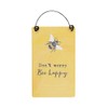 - DESIGN: Sweet mini hanging sentiment sign featuring a contemporary yellow bee design and the quote 'Don't Worry Bee Happy