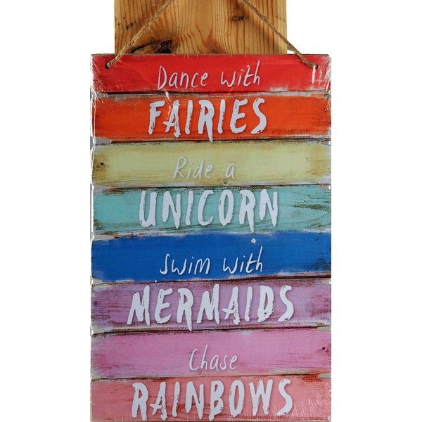 - INSPIRATIONAL WALL ART: Featuring the uplifting phrase "Dance with fairies, ride a unicorn, swim with mermaid, chase rainbows," this unique piece adds a sense of wonder and imagination to any living space.