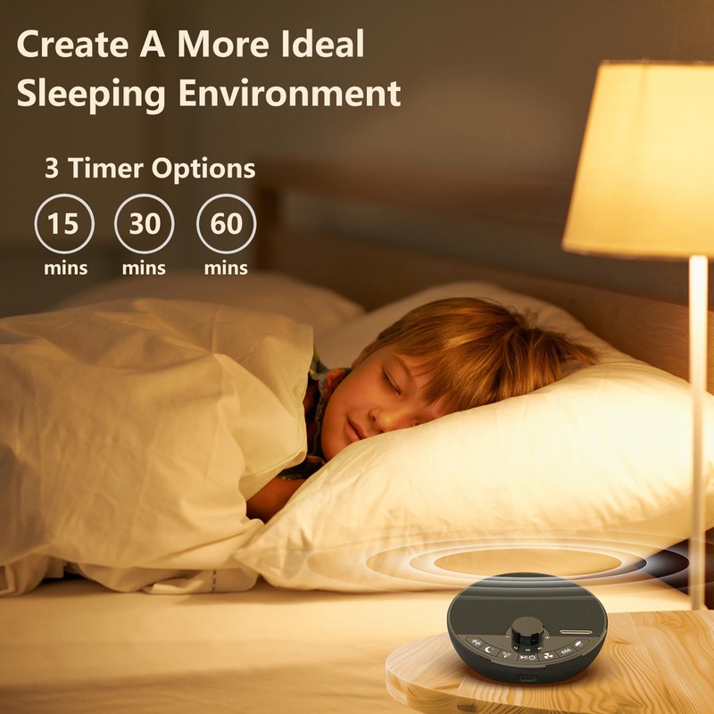 - 5)【Auto-Off Timer & Memory Function】This sleep machine can be set to auto-off after 15 minutes, 30 minutes, and 60 minutes. You can set the playback time to save power and keep regular sleep. Our noise machine can remember the last sound and volume level you selected when restarted, no need to reset to your previous settings.