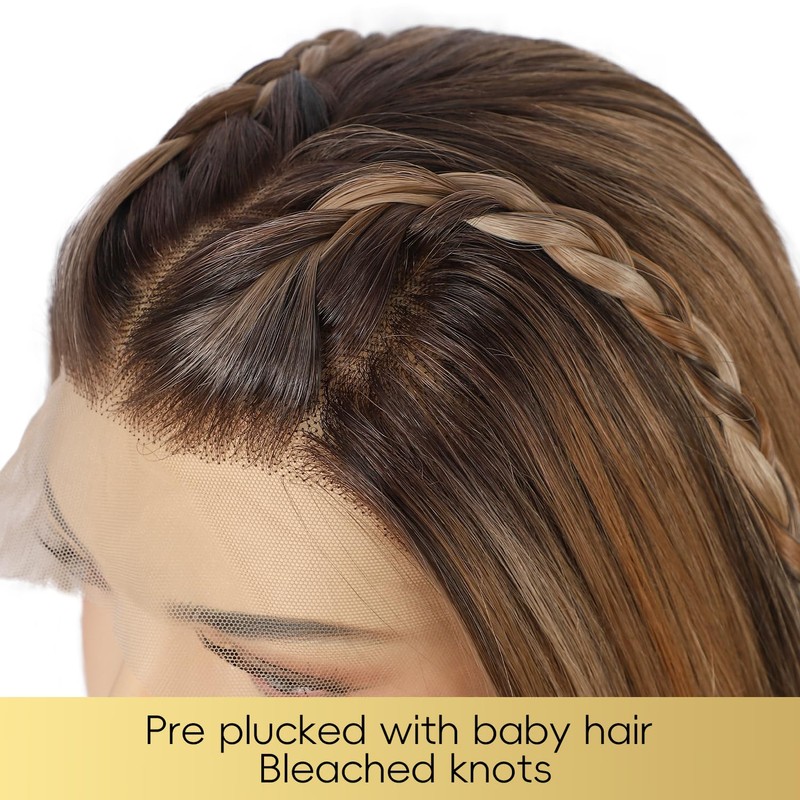 - 【Pre plucked with Natural Hairline】This 13x4 blonde lace front wig has pre-plucked baby hair around. Bleached knots make the hairline looks more natural