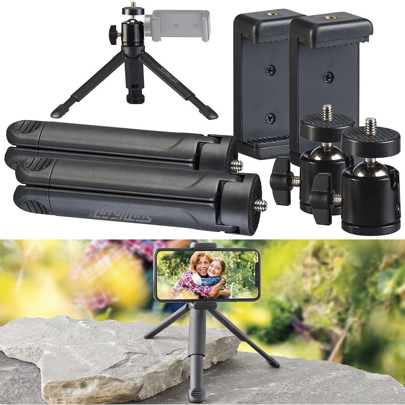 Somikon Table Tripod: Set of 2 Mini Aluminium Tripod Smartphone Holder 15.5 c...