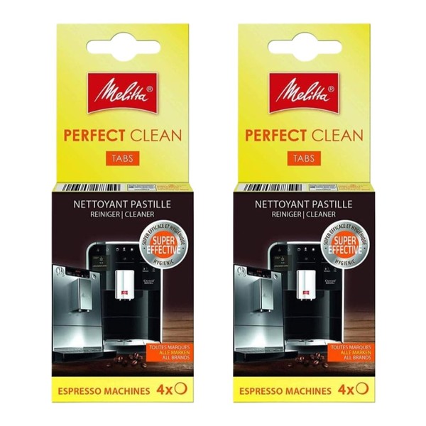 - Box contents: 2 packs of Melitta cleaning tabs. Contents per pack of 4 individually wrapped in film.