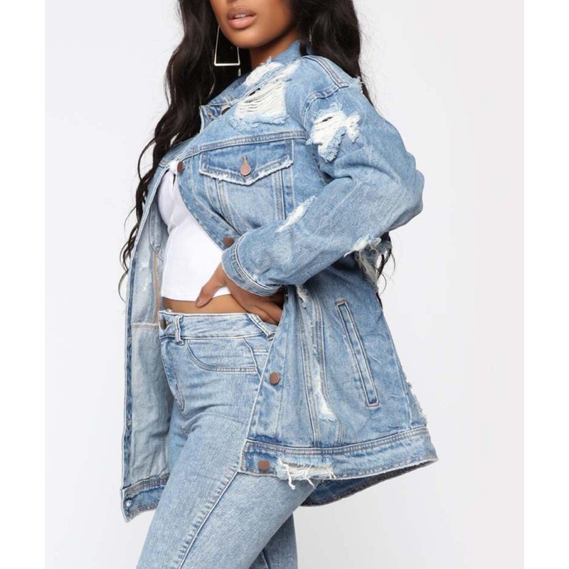 SOMTHRON Women's Distressed Denim Jeans Outfits Coat Oversized Spring Fall Ri...