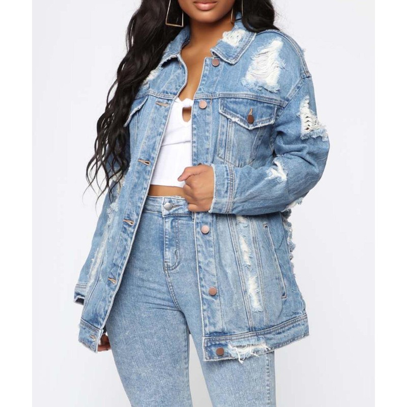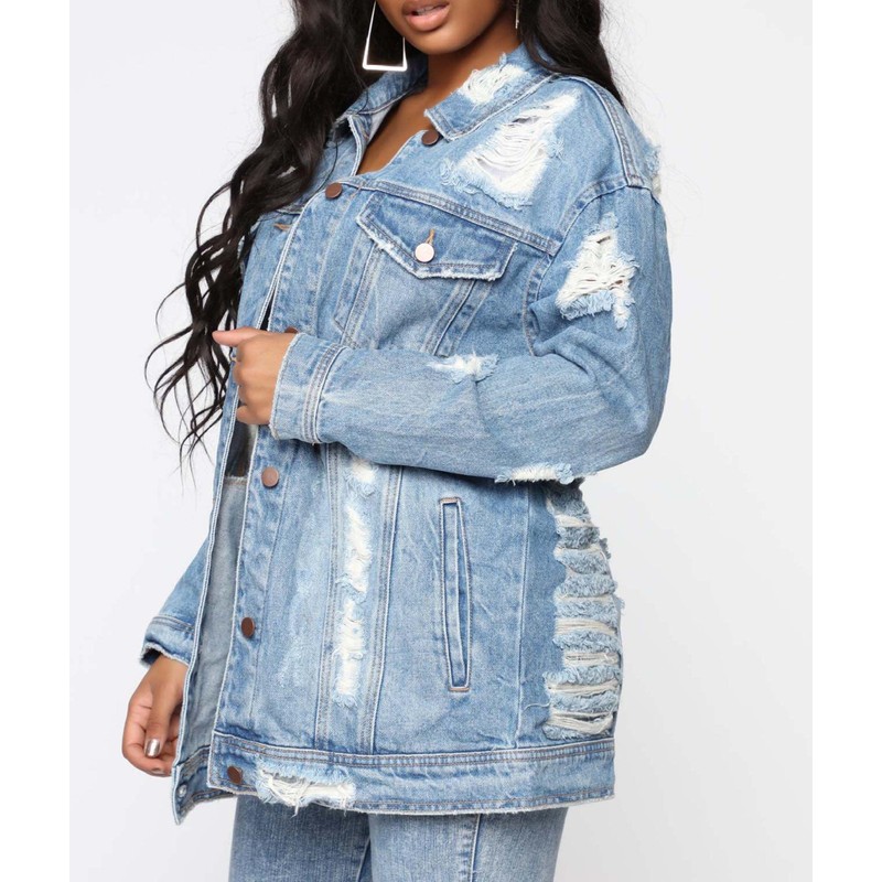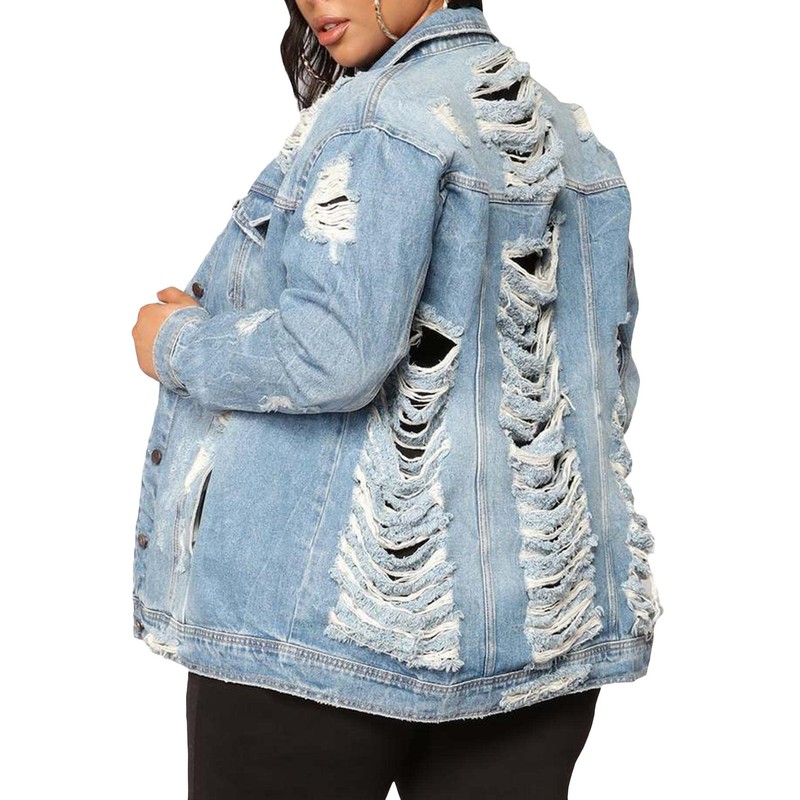 SOMTHRON Women's Distressed Denim Jeans Outfits Coat Oversized Spring Fall Ripped Outerwear Denim Jacket(LB-2XL)