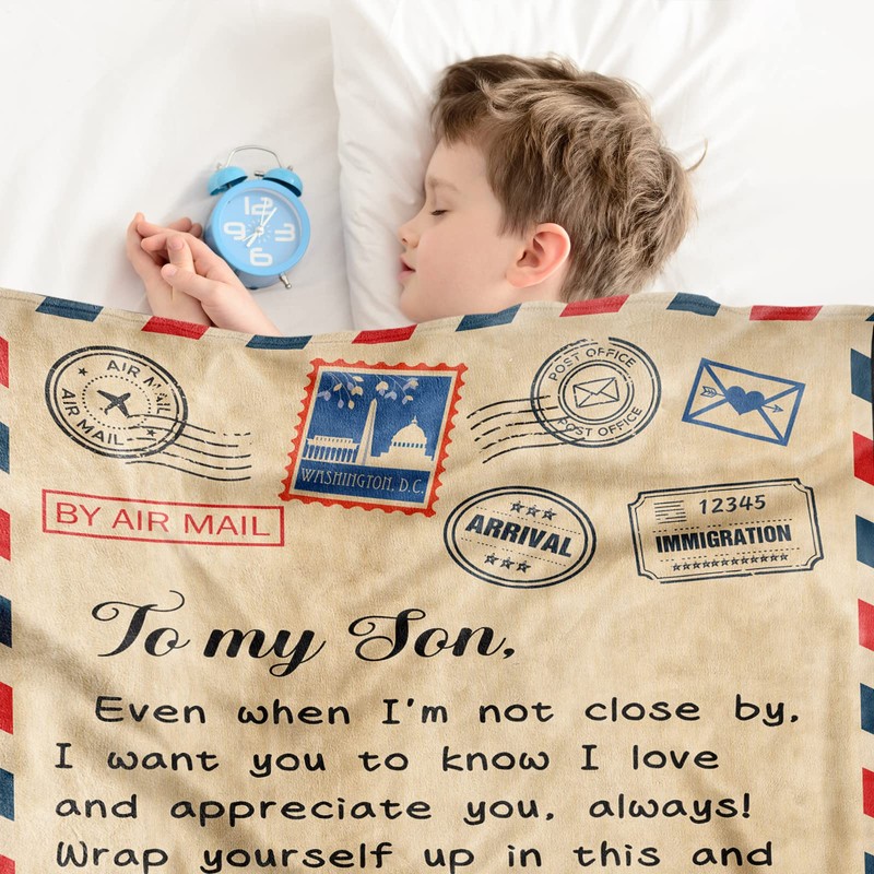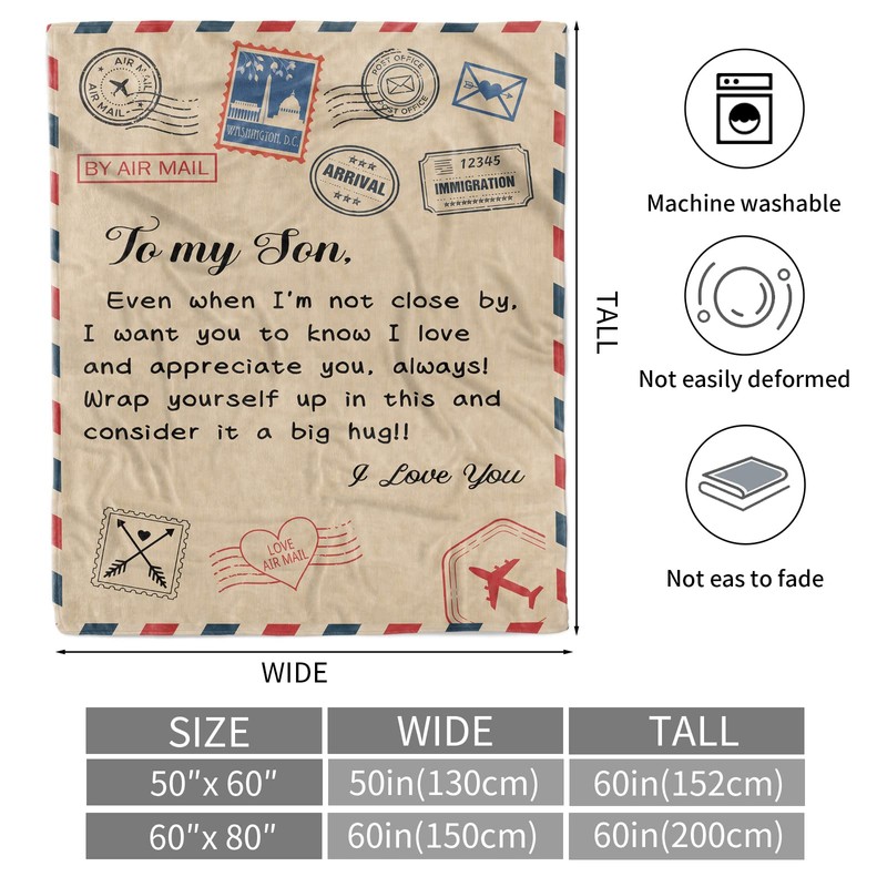 - THE BEST GIFT FOR YOUR SON: Our soft and warm son blanket is the ideal birthday gift for son, and it's also a very popular christmas gift, children's day gift, thanksgiving gift. Written with words of love and gratitude, send this sweet letter to your dearest son and let his drenched in love as his most cherished hug gift.