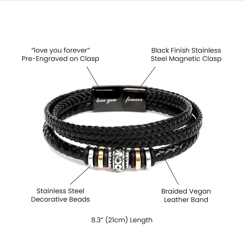 - To My Man Leather Bracelet: You will receive 1 piece leather bracelet which elevates your styles. This bracelet seamlessly blends rugged masculinity with a touch of elegance, making it a versatile accessory for a variety of occasions.