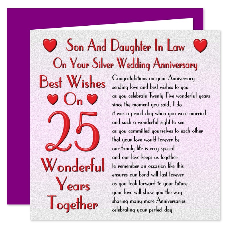 Son & Daughter In Law 25th Wedding Anniversary Card - On Your Silver Anniversary - 25 Years - Sentimental Verse