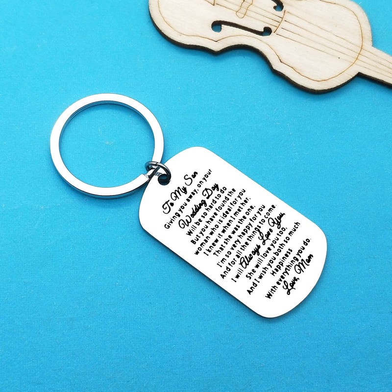 - Son Wedding Day Gifts: Son Wedding Day Gift Son Wedding Gift From Mom. This keychain is a special gift for son on his happiness day-wedding day. It is a meaningful wedding gift for son from mom,step son wedding gifts from stepmom.
