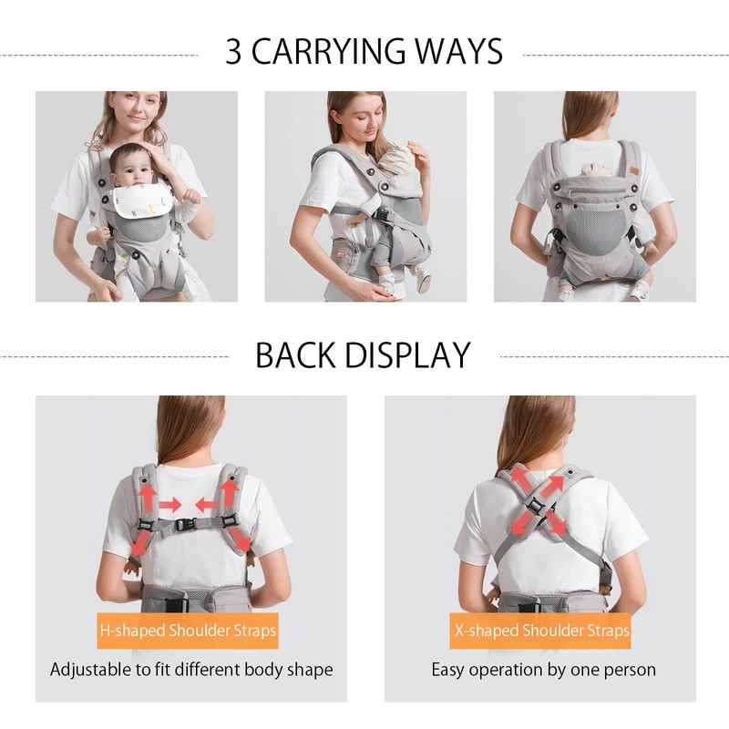 • Multiple Carrying Ways: Suitable for 3-48 months baby with a maximum load capacity of 20KG. The baby carrier has 3 ways to wear depending on baby's periods of growth: back carry, front carry facing in and facing out. Total 3 ergonomic carry positions for parents to carry baby comfortably and safely.