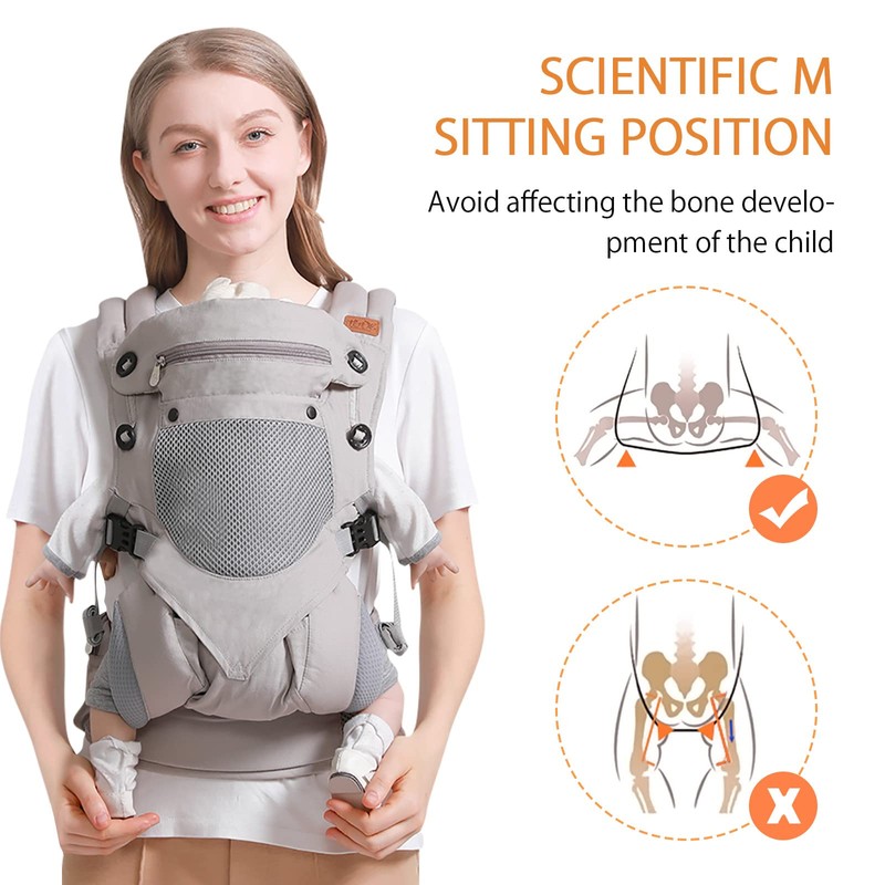 • Ergonomic Design: Our baby carrier is scientifically designed to keep baby's legs positioned in the ergonomic M shape position, avoiding affecting the bone development of baby. Adjustable widened belt help support weight on your hips, scientifically distribute the baby’s weight evenly to achieve comfortable carrying.