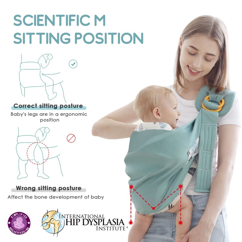 - ERGONOMIC DESIGN This baby carrier wraps the baby in a C-shaped, womb-like position, fits the baby's spine well, giving the baby a comfortable sense of security. It is scientifically designed to keep baby's legs in the ergonomic M-shape position and not affect baby's bone development.