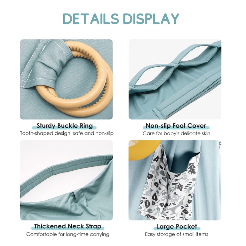 - Safe & Comfortable: the baby carrier comes with a safety belt to ensure the safety of your baby. Designed with sturdy tooth-shaped rings, non-slip and durable to bear heavy weight. The 5mm thickened neck support ensures gentle care of baby's sensitive skin, and the thickened neck strap reduces the neck and shoulder pressure of mum and dad for comfortable wearing.