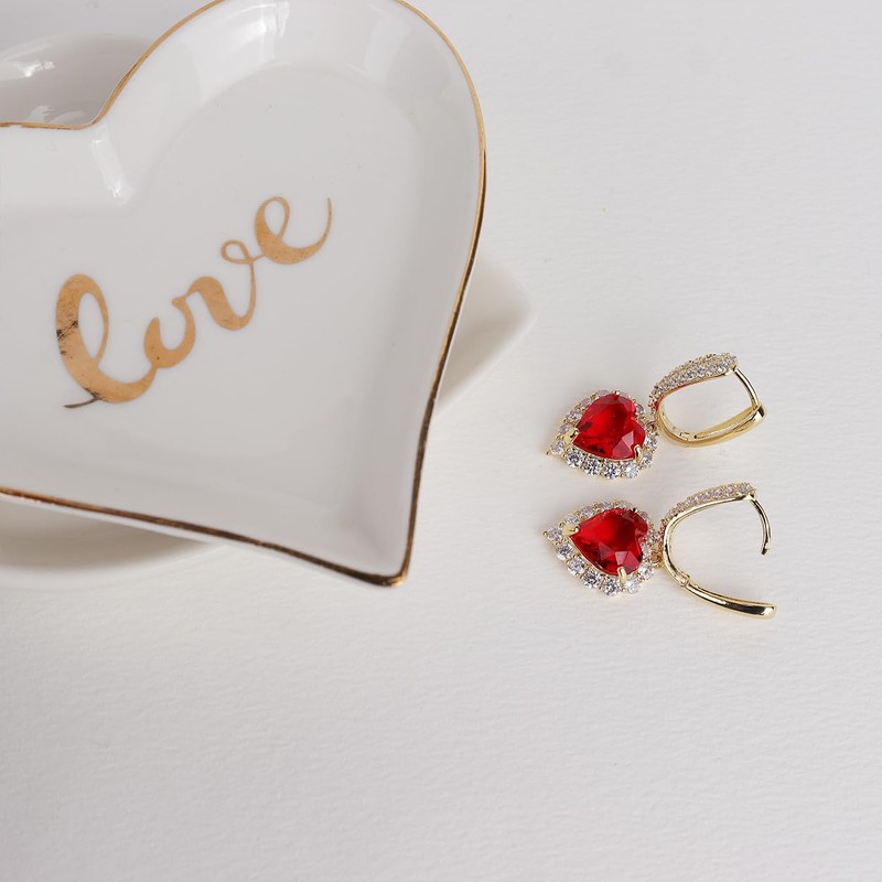 Sonateomber Rhinestone Heart dangle Gold Hoop Earrings for Women Valentines Day Sparkly Ruby Red Crystal Cubic Zirconia Drop Huggie Earing Dangling Prom Fashion Jewelry Gift