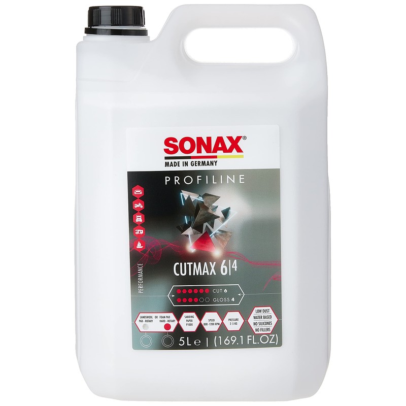- PROFESSIONAL CUTTING COMPOUND - Sonax CutMax removes marks of P1500 grit or finer, including paint defects, scratches, dust inclusions, and severely scratched or oxidized paint work without damaging the clear coat