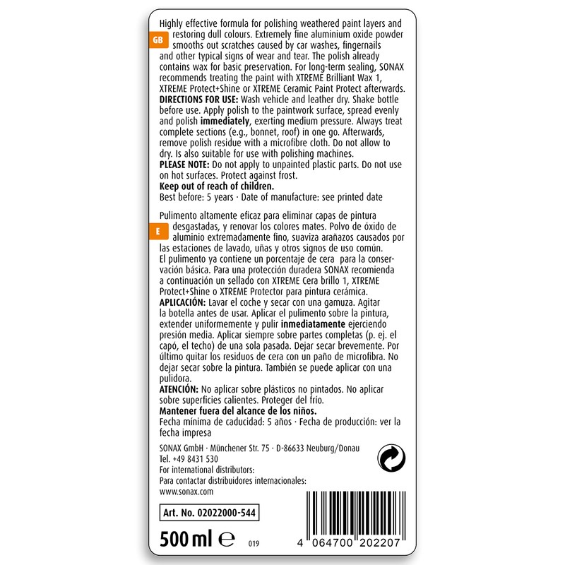 - Scope of delivery: 1 x SONAX XTREME POLISH+WAX 3 HYBRID NPT (500 ml) | Item-No, '02022000-544