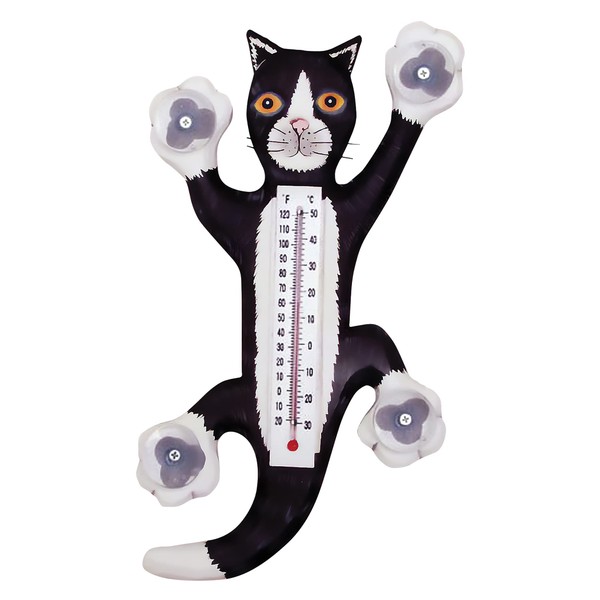 Songbird Essentials SE2170901 Climbing Black & White Cat Small Window Thermometer (Set of 1)