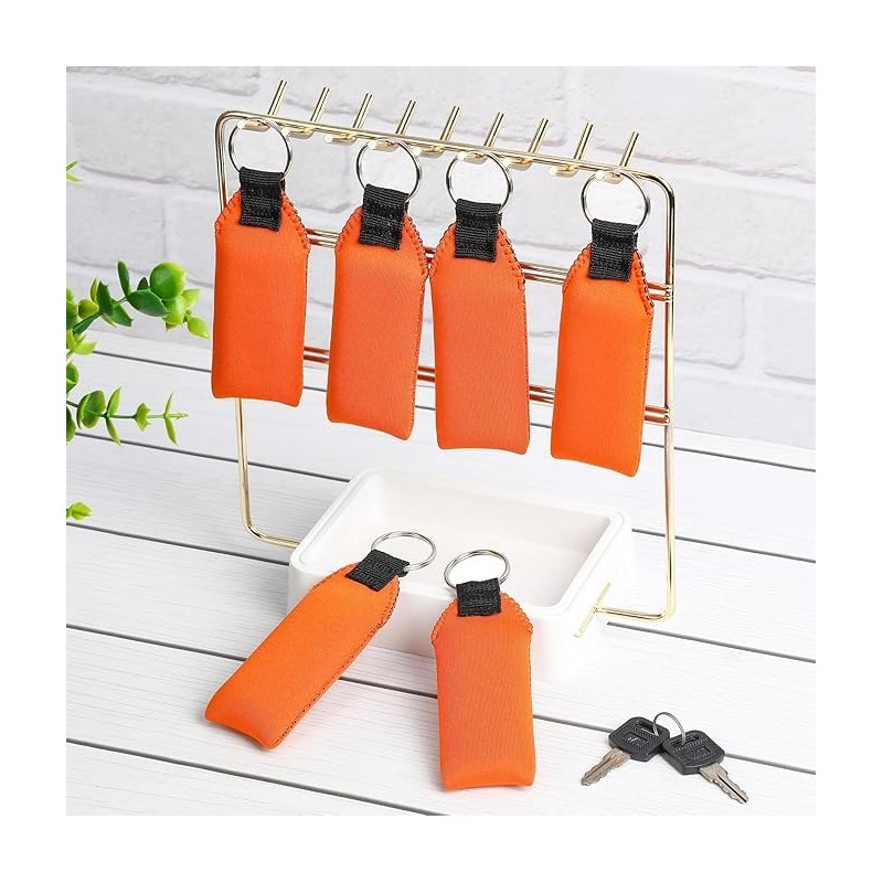 2.Each floating boat keychain measures 4.5*12cm—large enough to spot easily yet compact for daily use. The sturdy stainless steel buckle keeps keys attached, even during intense water sports.v 3.The neoprene foam keychain features a bold orange hue that stands out on water and resists fading.Perfect for quick retrieval during boating, fishing, or rafting.