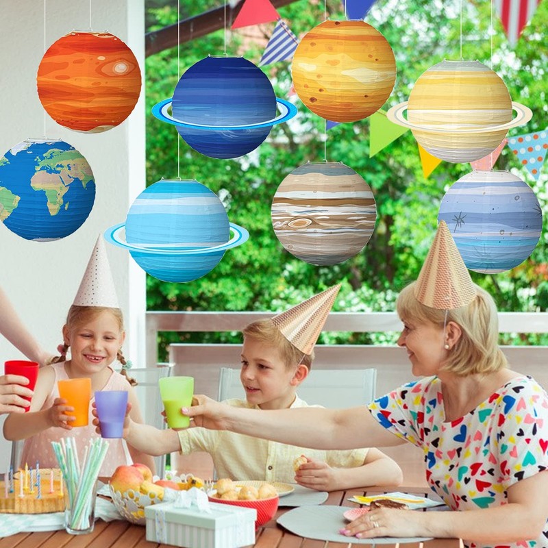 Songjum 8 PCS Paper Lanterns Planets Space Theme Paper Lanterns for Outer Space Themed Birthday Party Decorations Solar System Hanging Decorations
