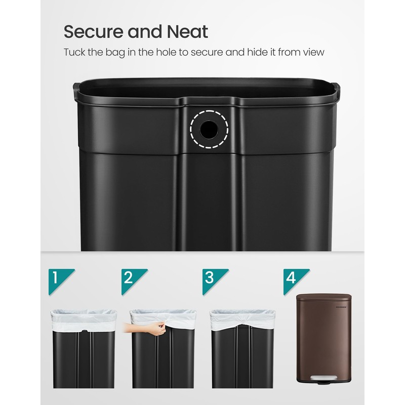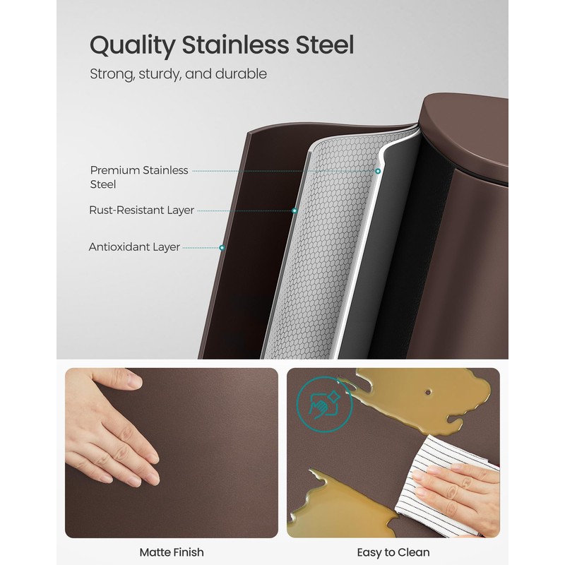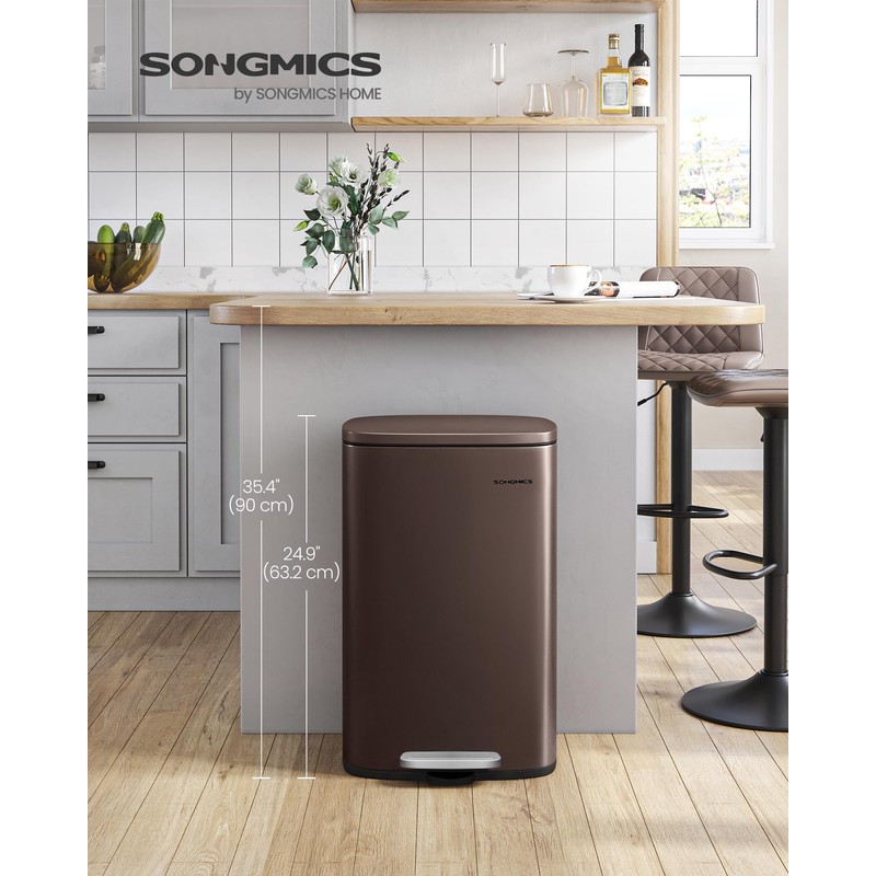 SONGMICS 13 Gallon (50 L) Trash Can, Stainless Steel Kitchen Garbage Can, Recycling or Waste Bin, Soft Close, Step-On Pedal, Removable Inner Bucket, Brown ULTB50BR