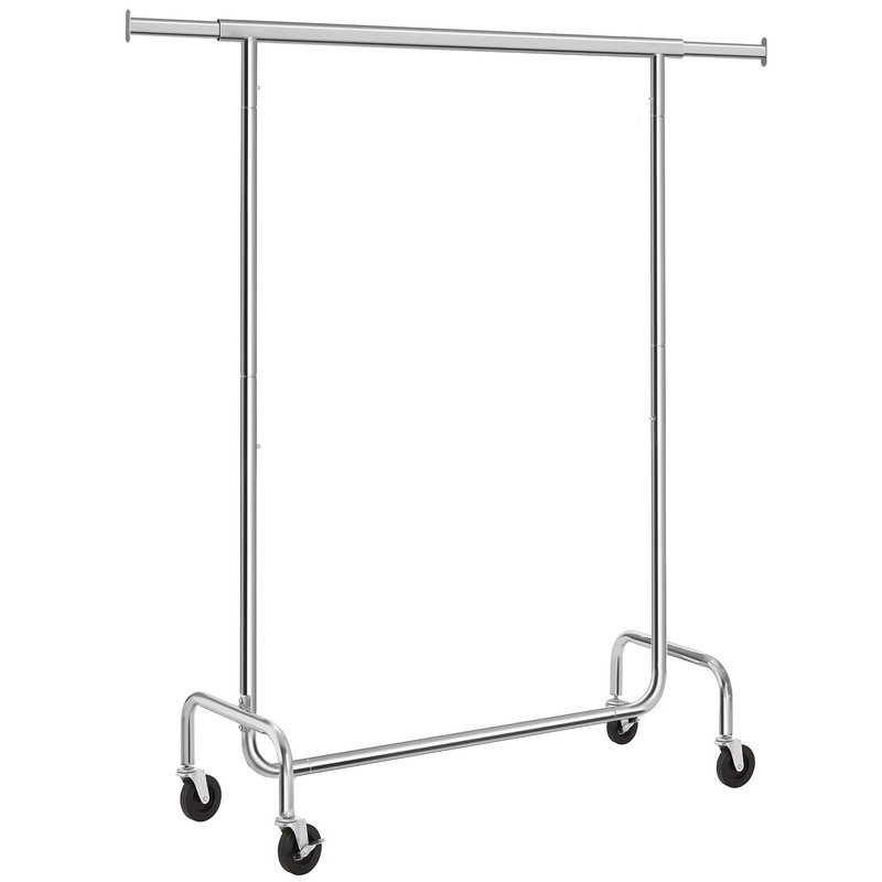 SONGMICS Clothes Garment Rack Heavy Duty Maximum Capacity 300 lb Clothing Rack on Wheels All Metal Chrome Extendable UHSR11S