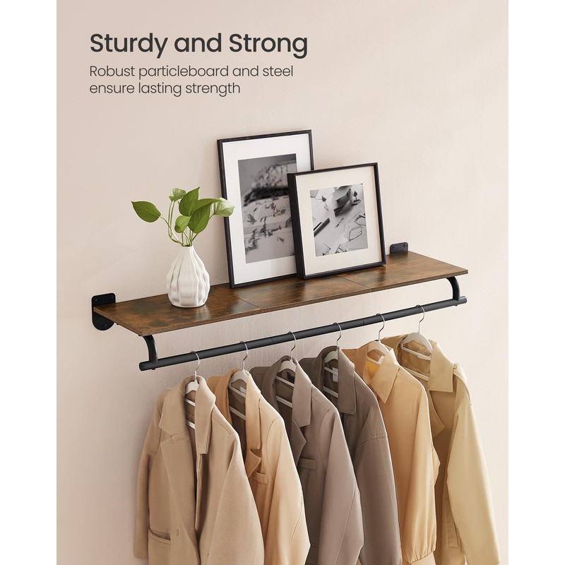 SONGMICS Clothes Rack with Top Shelf, Wall Mounted Clothing Rack, with Hanging Rod, Loads up to 77 lb, 11 x 42.9 x 5.2 Inches, Entryway, Bedroom, Closet, Rustic Brown and Ink Black UHSR135B01
