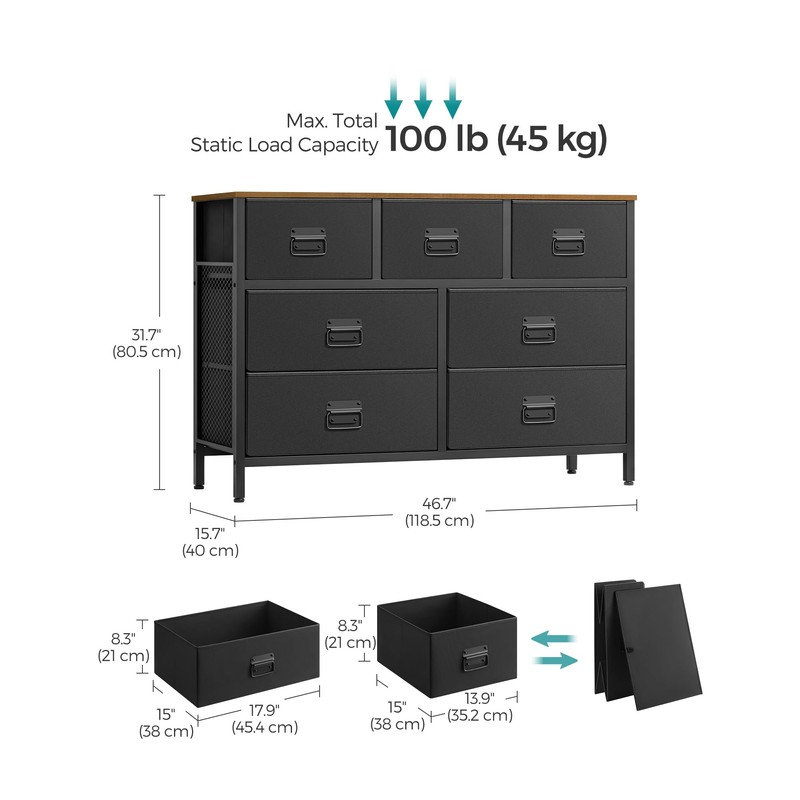 - [Plenty of Storage] Designed with organization in mind, this closet drawer dresser has a large capacity and keeps storage sorted. 4 large fabric drawers, 3 small fabric drawers, and a 46.7” wide table top are here to meet your daily storage needs
