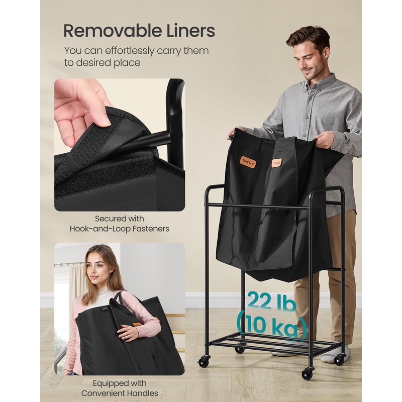 - 【STURDY AND DURABLE】Made from reinforced, durable 600D Oxford fabric and supported by robust 19 mm steel tubes, this laundry sorter is strong and stable, holding up to 22 lb in total