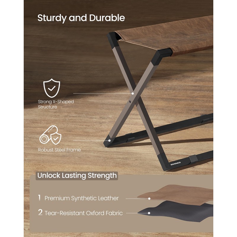- 【STURDY & FLOOR-FRIENDLY】Built with an X-shaped steel structure and a synthetic leather shelf reinforced with Oxford fabric, this luggage rack is robust and durable, holding up to 110 lb (50 kg). Plastic foot pads protect your floors from scratches