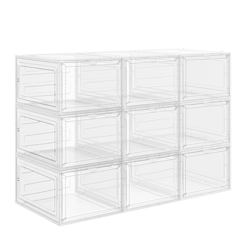 - [First, Display Your Shoes] Remember the tough mornings trying to find the right pair for the day? Display them in this set of 12 transparent shoe boxes and grab the pair for your outfit, or, just make a picture-perfect array to let your shoes shine