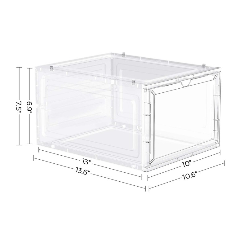 - [Tacked or Side By Side? Up To You!] Thanks to the plastic studs, you can stack one box on top of another or connect them side by side to create a shoe storage rack, fitting either a slim gap or spare wall